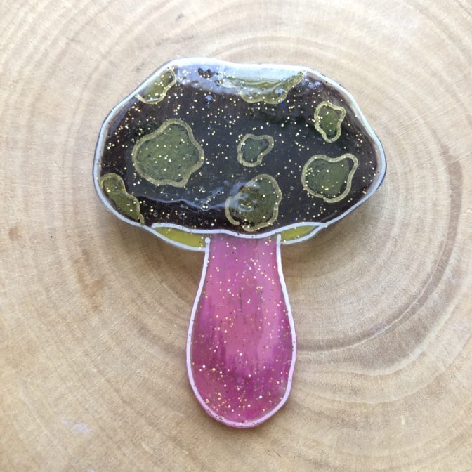 *プラバン+レジンで作った妄想きのこのブローチ。