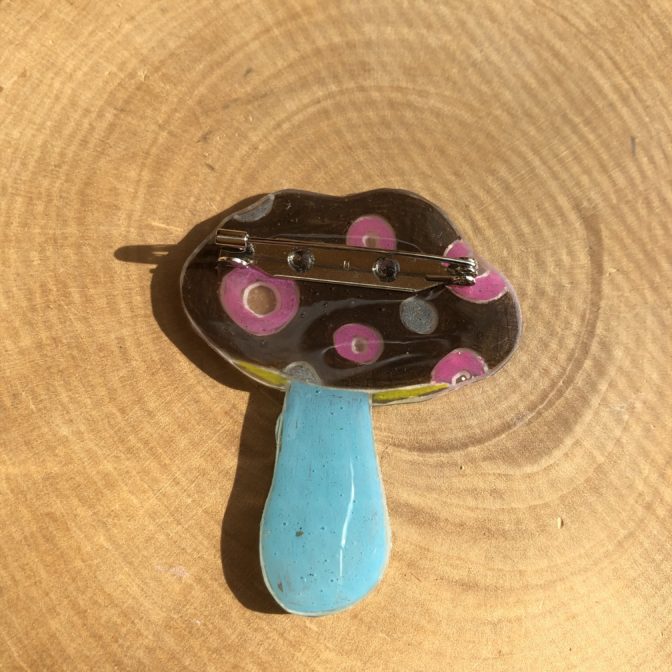 *プラバン+レジンで作った、きのこ好きにはたまらない一点もののブローチになります。