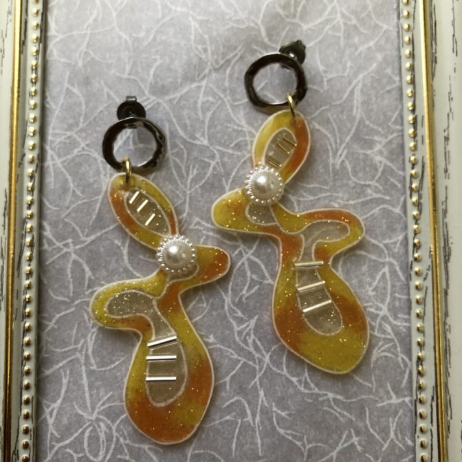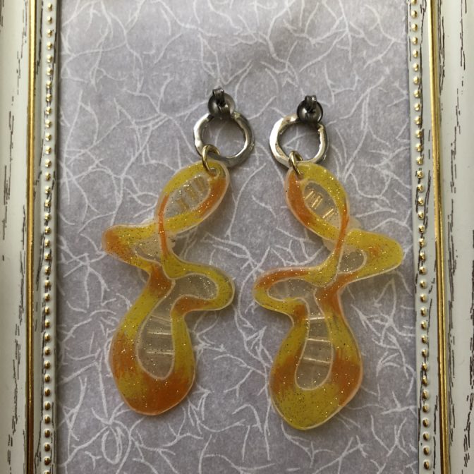 オレンジとイエローの見事な曲線のピアス