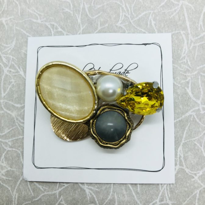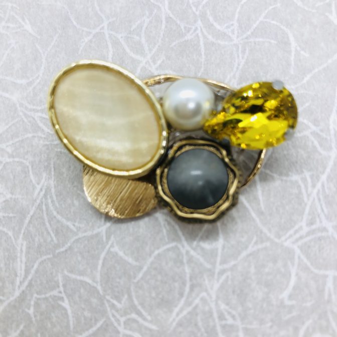 アトリエひなたオリジナルのボタンとビジューのお洒落ブローチです。