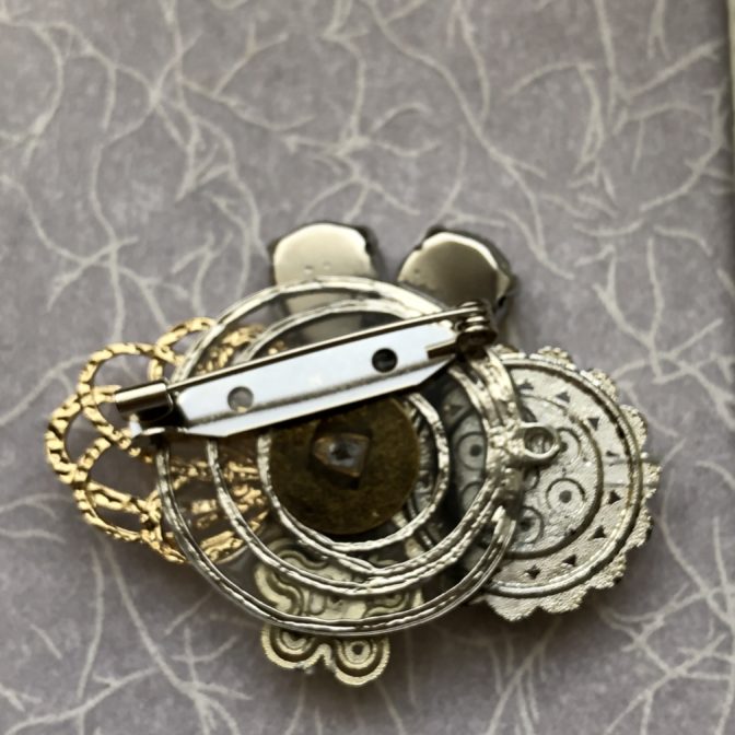 ビジューやパーツをふんだんに使い仕上げたブローチです。